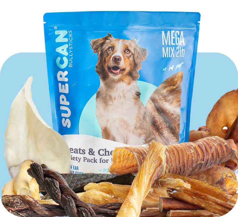 Supercan Beef Mega Mix are 100% Natural Dog Chews, single ingredient sourced from free range grass fed South American cattle with no hormones and no GMOs.